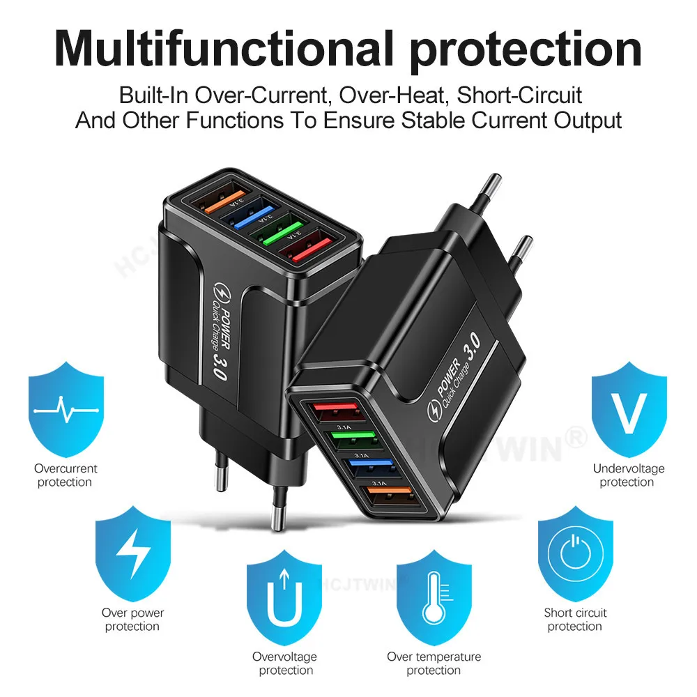 The top port is optimized for smartphones and supports enhanced fast charging. The remaining three ports adjust output automatically to match different device power requirements now!